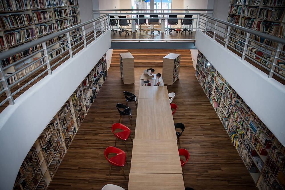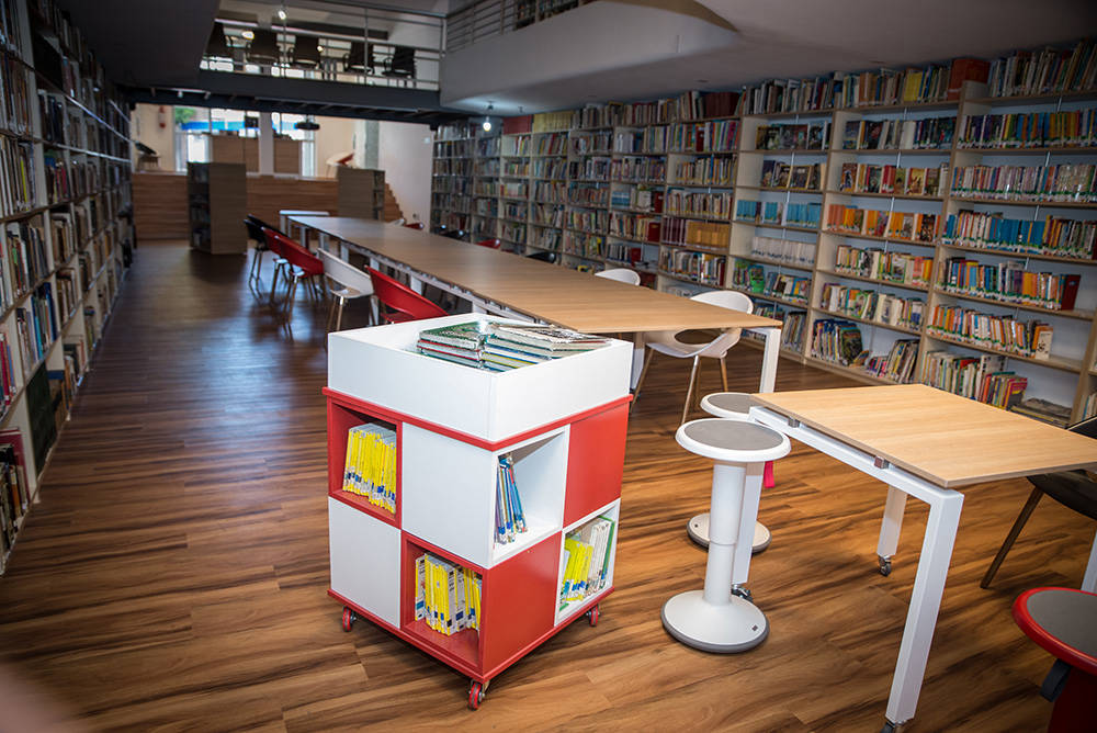 La nueva Biblioteca es un espacio educativo de 300m2, para el aprendizaje, la imaginación y la convivencia. La reforma dio como resultado una Biblioteca más grande y más confortable, espacios acordes para investigación, nuevo mobiliario, iluminación natural, un lugar placentero para encontrarse con la lectura.