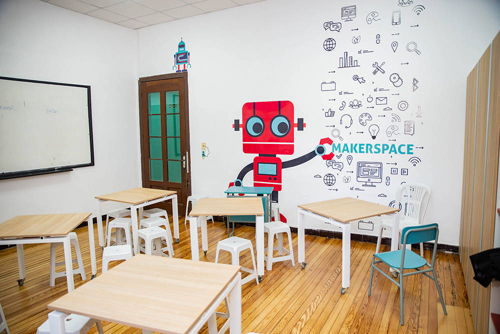 El proyecto Maker Space se llevó a cabo con dos objetivos principales: personalizar las ideas y trabajar con cada alumno en particular, e incubar el conocimiento, generando cultura de coworking. Con énfasis particular en la atención personalizada y el desarrollo del talento, se trabaja con modelos de clases distendidas, en las cuales cada alumno puede llevar sus dispositivos electrónicos y evacuar cualquier duda. Es un espacio para fomentar la creatividad. Dentro de las tres grandes ramas de nuestro proyecto, robótica, programación y diseño, buscamos reconocer los perfiles de los estudiantes y promover su libertad creativa dentro de este ámbito.